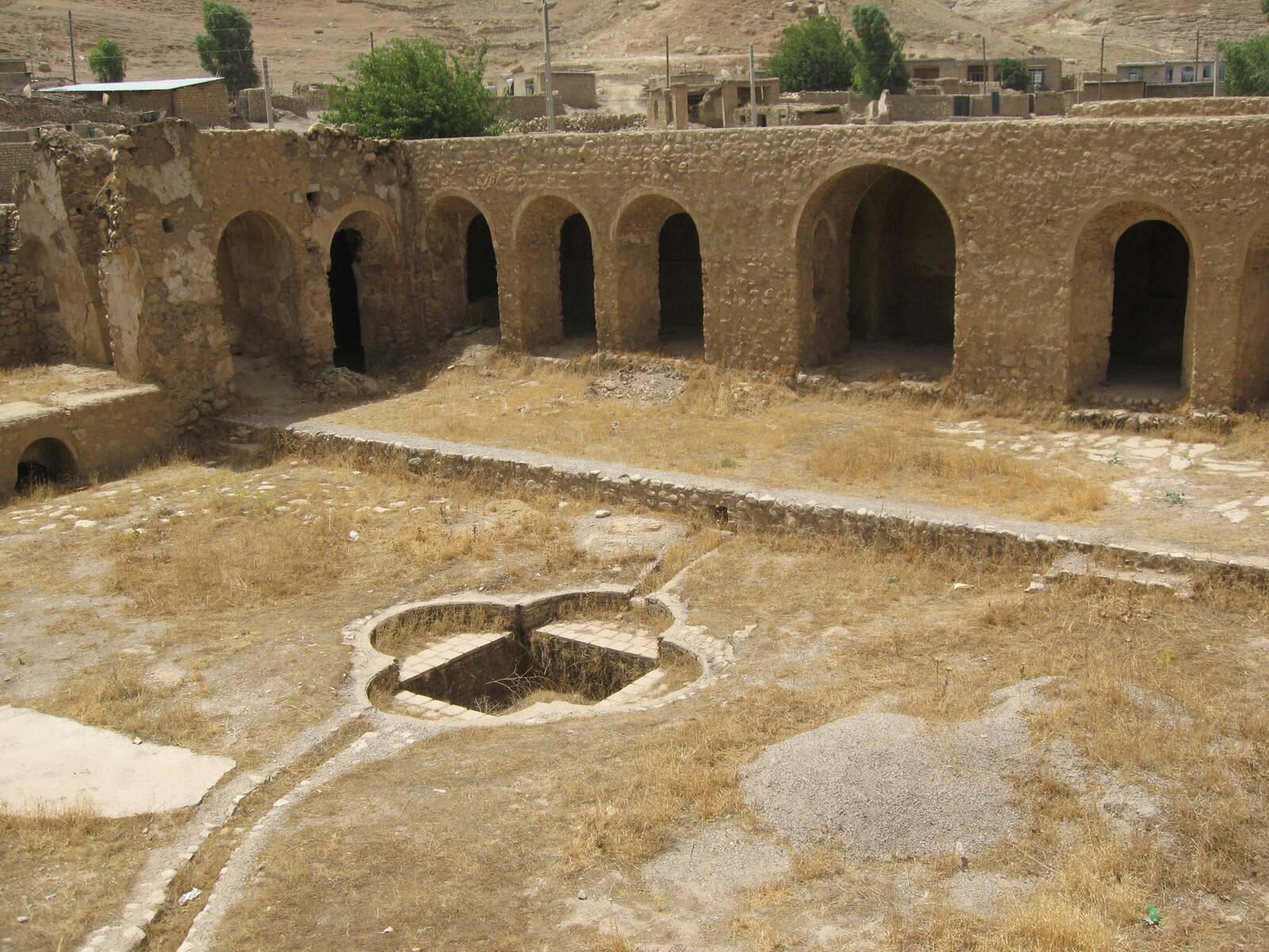 حیاط قلعه سه راه دارد. یک راه به اصطبل ختم می‌شود، راه دیگر به طبقه دوم که محل زندگی خان بوده و راه سوم که به حیاط مرکزی می‌رسد. همه اتاق‌ها با حیاط در ارتباط هستند. در حیاط، حوضی آجری و مربع‌شکل با طرح گُلِ چهار پَر وجود دارد که آب آن از طریق رودخانه شیخ مکان تامین و بعد از ورود به حوض، از زیر دیوار شمالی خارج می‌شد.
