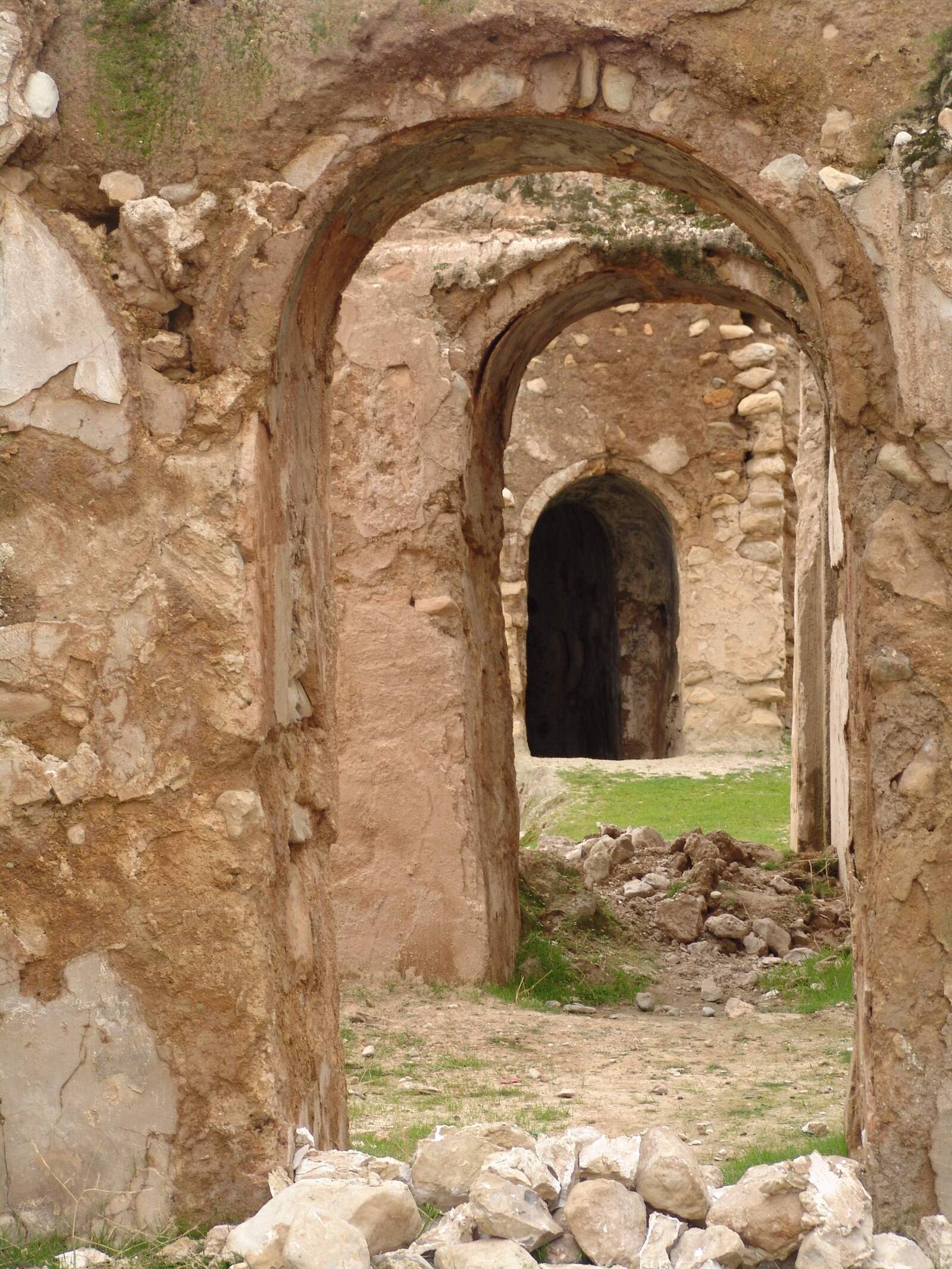 در این بنا سکوهای توخالی با سوراخ‌هایی تعبیه شده که محل ذخیر مواد غذایی است. طبقه دوم که محل اسکان خان و خانواده‌اش بوده، قسمت اعیانی بنا است؛ پوشش رنگی دارد، اتاق‌های مستطیل شکل تودرتو از گچ پوشیده شده که دارای سه پنجره با طاق‌های هلالی چوبی است. در امتداد ضلع شمالی بنا اتاق‌هایی بوده که طبق مطالعات اسناد متعلق به دکان‌های شیرینی‌‌پزی، چرم‌سازی، نمد‌مالی و … است. مصالحی که در این بنا به کار رفته، قلوه سنگ‌های تراشیده و نتراشیده، ملات و گچ است. آجر و گچ بیشتر برای تزئینات بنا به کار رفته است.